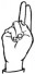 На ћирилици написано БУДИМИР ЋУРКОВИЋ састоји се из 15 слова [?]. Исписано ћириличном једноручном азбуком за глувонеме: